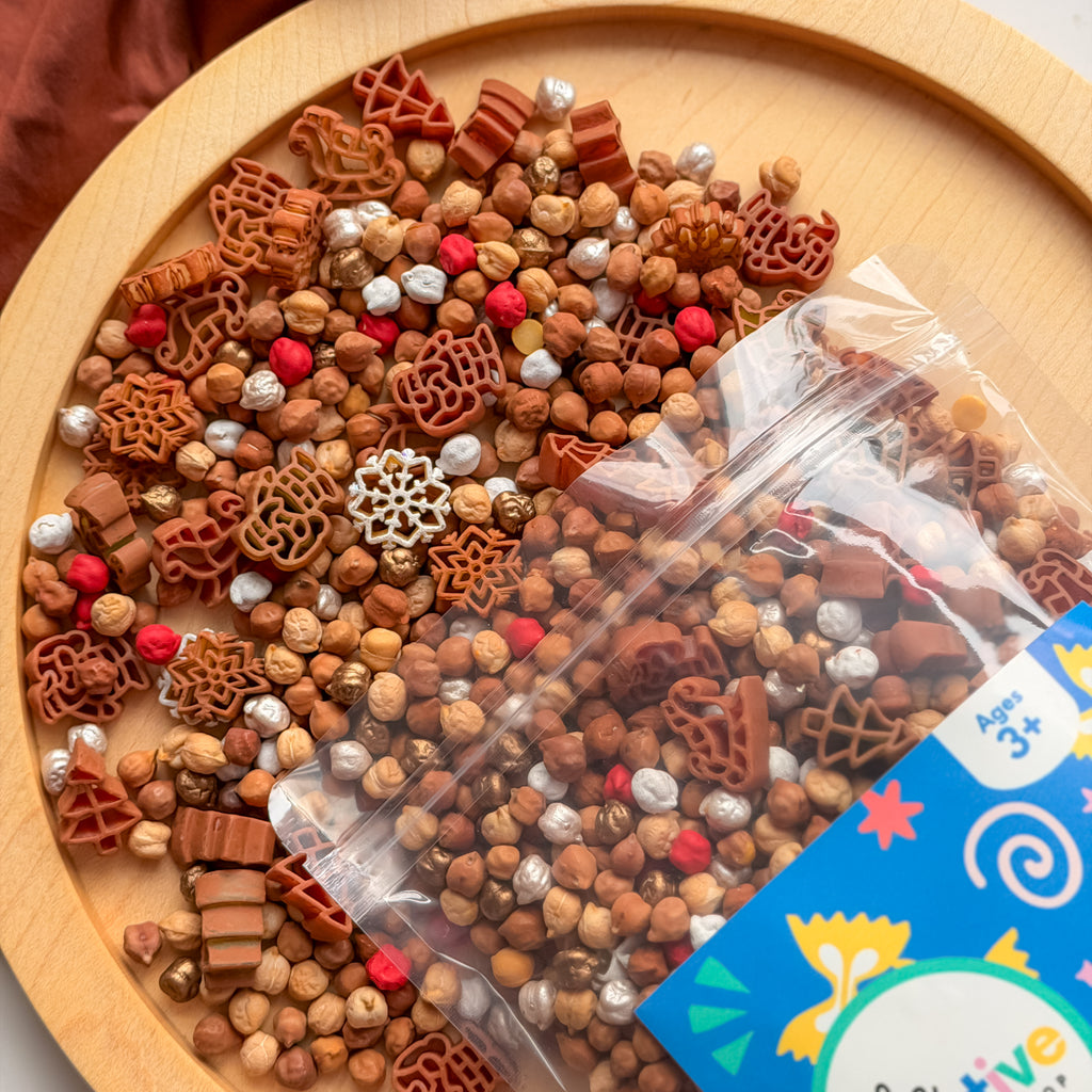 Fragile Components: Some sensory bin components, such as dried pasta, are inherently fragile and may break during shipping or vigorous play. This is a natural characteristic of these materials and not considered a defect.
